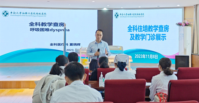 为响应学习国家最新版《住院医师规范化培训教学活动指南》及“两个标准”细则要求,进一步提升医院住培教学质量,夯实规范教学活动,加强住培师资带教能力。11月8日开始,每周三下午,中南大学湘雅二医院桂林医院常态化开展全科住培教学展示活动。此活动由党委书记、院长刘先领亲自挂帅,委托分管副院长黄贤圣带领科教部具体实施,要求全科住培基地全体工作人员参与,全力推动医院住培教学质量提升及学科内涵建设。