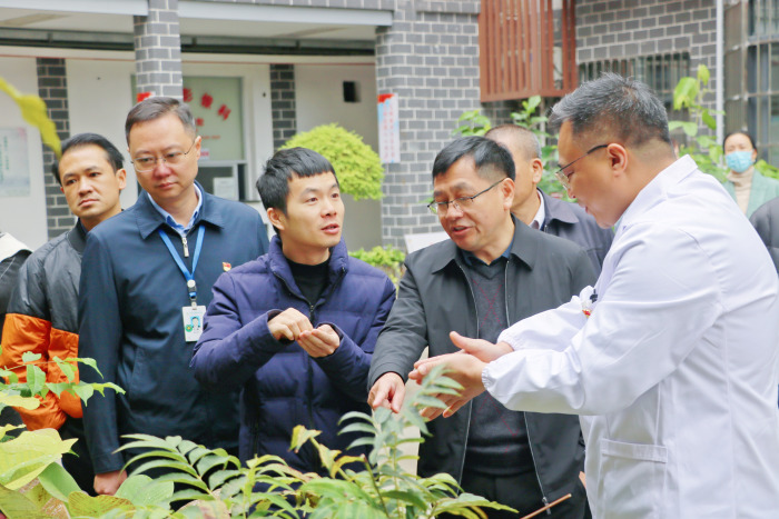 揭牌仪式后,广西中医药大学领导、专家一行参观考察了医院新门诊大楼、脾胃病科、肛肠科、中药壮瑶药植物科普园,并进行2023年实习中期检查,结合实际对医院医、教、研工作提出了宝贵的指导和建议。