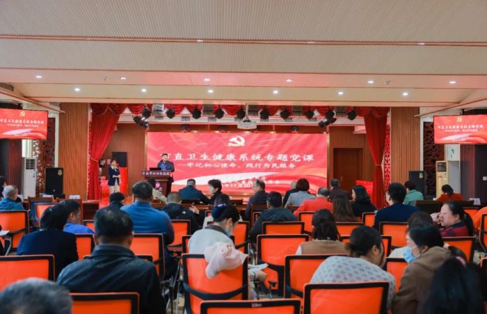 检查结束后,桂林市卫生健康委员会党组成员、副主任麦浩在医院门诊六楼会议室开展了题为《牢记初心使命 践行为民服务》的专题党课,她从“今天我们处在什么样的时代”“我们要跟上时代的需求”“我们的目标”三个方面引发与会人员的思考。麦浩表示,我们一要提高政治站位;二要加强党性修养;三要牢记初心使命,用新发展理念推进卫生健康事业高质量发展,构建“以人民为中心”的大卫生、大健康格局,推进医疗卫生体制改革。