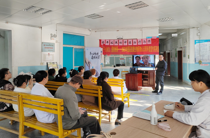 活动现场,药学部副主任秦春明专为社区老年人进行了一场关于老年骨质疏松和合理使用抗微生物药物的科普讲座,向他们讲解了老年骨质疏松的原因和预防措施,宣传抗微生物药物的合理使用,提醒他们避免滥用。除了讲座内容,现场还播放了抗微生物药物合理使用的视频,宣传抗菌药物的相关知识和正确使用方法,活动还组织药师团队为居民提供现场咨询和答疑解惑。