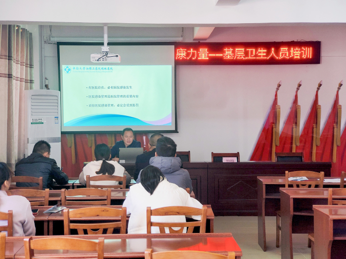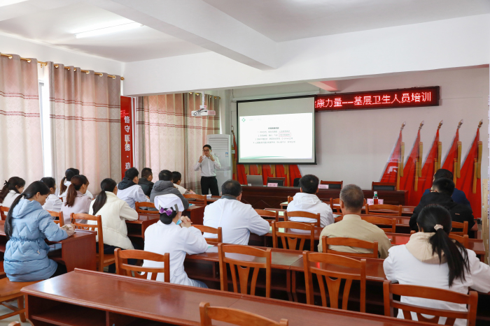 为推进健康中国建设与全面推进乡村振兴工作相结合,在优质医疗资源上做加法,提高基层医务人员技术水平,进一步筑牢乡村振兴“健康线”,11月22日上午,中南大学湘雅二医院桂林医院组织医疗专家团队前往平乐县桥亭乡,开展“党旗引领践初心 医疗惠民促振兴”“六个一”系列活动之“为乡村振兴注入健康力量”基层医务人员培训,30余名来自平乐县桥亭乡卫生院的基层医务人员参加培训。