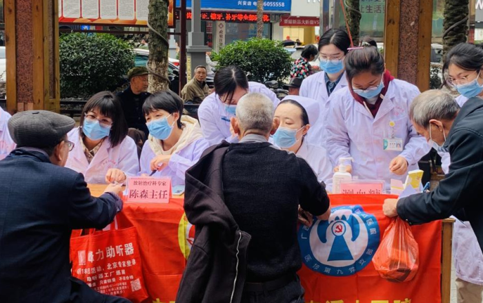 11月25日,广西壮族自治区南溪山医院外科第一党支部,医技第七、第九党支部前往兴安县中心广场联合开展“关爱生命,健康同行”义诊活动,党员医疗专家们为当地群众提供了一系列的免费医疗服务。