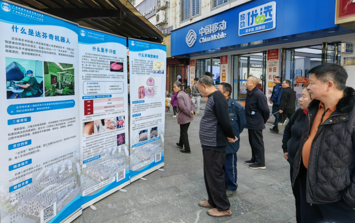 胸外科主任、主任医师熊荣生表示,定期进行肺部CT检查是早期发现肺癌的关键。吸烟是导致肺癌的主要危险因素之一,熊荣生呼吁广大群众积极戒烟,并避免长期接触有害气体和粉尘。此外,长期患有慢性肺部疾病、职业暴露以及家族遗传等因素也可能增加患肺癌的风险。在活动中,不少群众驻足在肺结节、达芬奇手术机器人等宣传栏前浏览观看。医疗小组还向当地群众免费发放卫生防病知识宣传手册和药品,积极引导他们养成健康的生活习惯,让群众在家门口就能享受三甲医院的优质医疗护理服务,获得当地群众的一致好评。