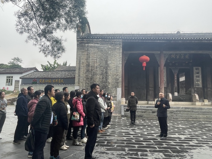 灵川县委党校副校长伍银生讲解灵川县江头村爱莲家祠的清廉文化