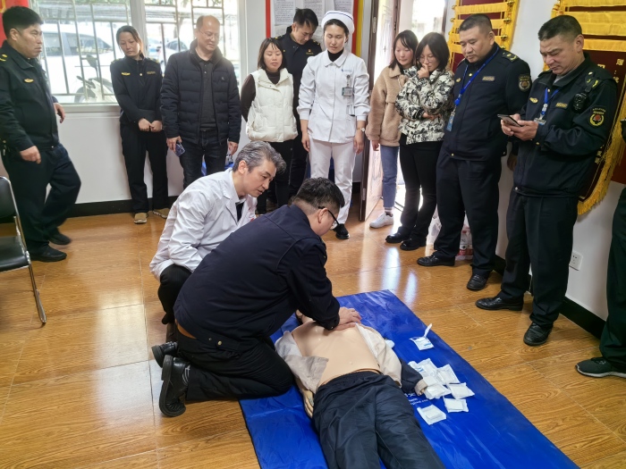 南溪山医院外科第五党支部书记、心脏大血管外科副主任轩永波带领科室医务人员通过健康讲座、急救知识培训和义诊的方式,向七星区综合行政执法局的职工传递健康理念、普及健康知识,现场开展疾病诊断和治疗。
