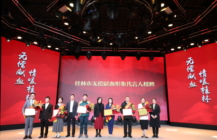 杨平(右二)授聘桂林市无偿献血形象代言人