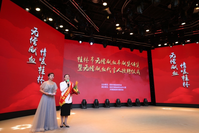 12月7日,桂林市无偿献血奉献奖颁奖暨无偿献血代言人授聘仪式在桂林市文广新大厦举行。广西壮族自治区南溪山医院外科第十三党支部书记、烧伤整形与创面修复外科护士长杨平荣获2020-2021年度“全国无偿献血奉献奖金奖”和“2023年度桂林市无偿献血形象代言人” 。