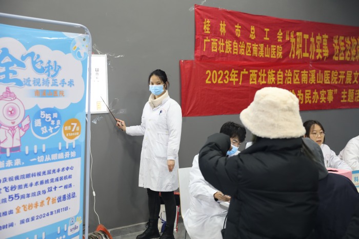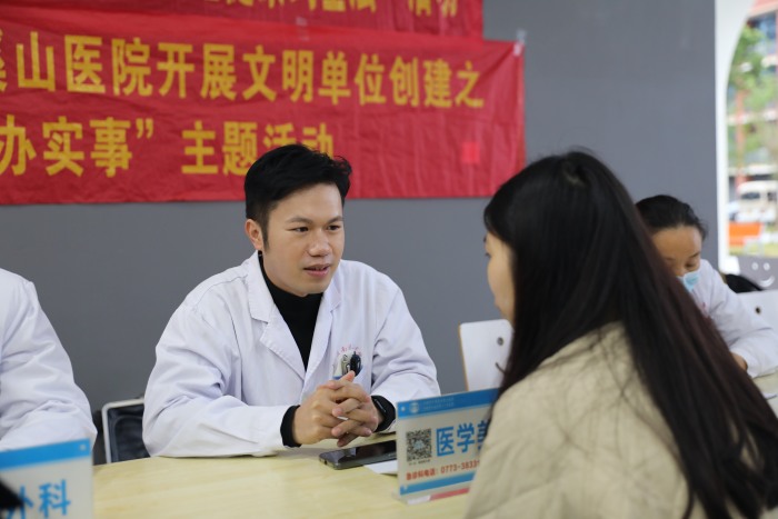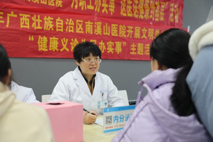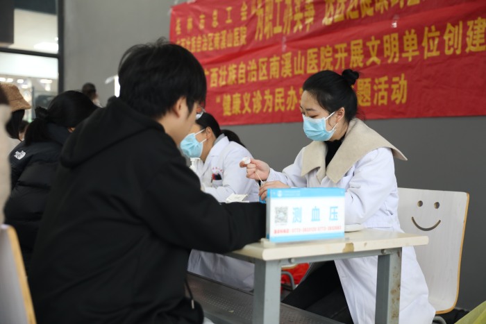 为深入推进全民健康生活方式行动,12月15日,广西壮族自治区南溪山医院行政后勤第一党支部、第九党支部,医技第八党支部组成义诊医疗队,到桂林信息科技学院开展文明单位创建之“健康义诊为民办实事”主题党日活动。