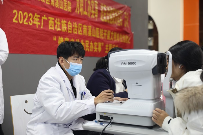南溪山医院眼科医护人员为在场学生检查眼健康问题