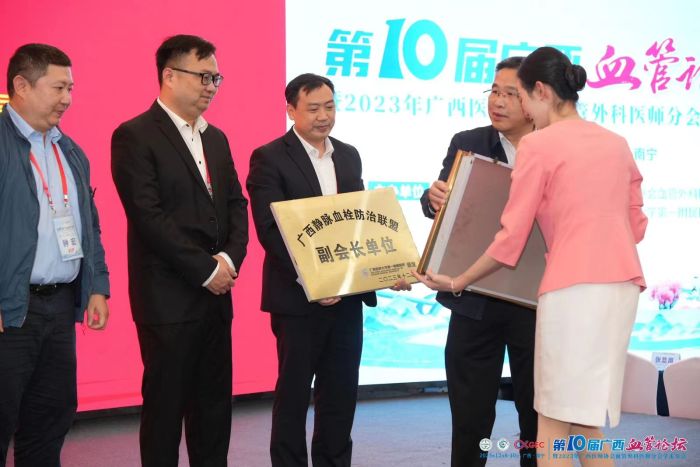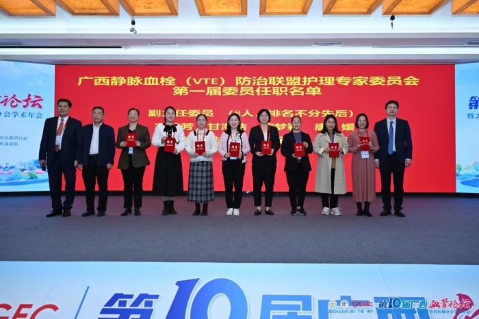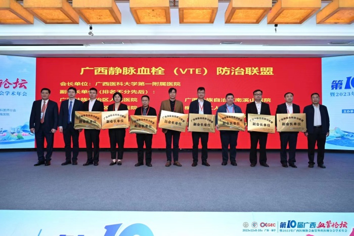 此次大会同时召开了广西静脉血栓(VTE)防治联盟大会并成立VTE联盟护理专家委员会,广西壮族自治区南溪山医院成为广西静脉血栓栓塞症(VTE)防治联盟副会长单位及第一届广西VTE防治联盟护理专家委员会副主委单位,医院副院长、血管外科学术带头人胡长付担任副会长,血管外科护士长张唐馨担任VTE防治联盟护理专家委员会副主任委员。