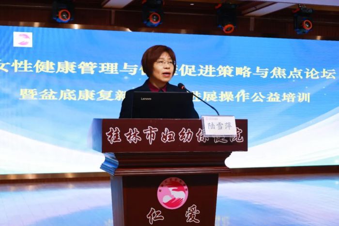 本次培训班邀请了广西中医药大学附属瑞康医院、广东省中山市人民医院、桂林医学院附属医院、桂林市妇幼保健院相关专家分别就妇女健康管理是不孕不育生殖成功的关键,TECAR疗法在盆底诊疗中心的应用分享,加强妇幼保健专科建设、激活医院发展新动力,以盆底中心为基础的健康管理中心院内协同运作思路,不孕不育的诊疗规范,围绝经期的中医调治养,从“治未病”看中医与妇幼的融合,女性全生命周期健康管理之科普实践等内容对参训人员进行理论授课,会上专家与广大医务工作者分享盆底康复最新技术,共谋女性健康事业新发展。
