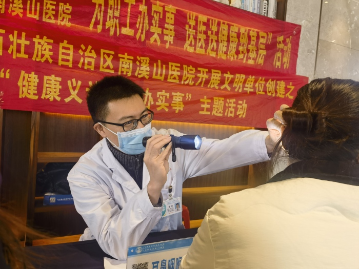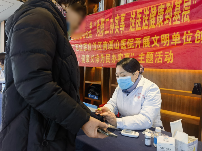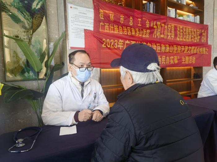 12月23日,桂林市总工会与广西壮族自治区南溪山医院联合开展的“为职工办实事,送医送健康到基层”系列活动第98站,走进丹桂府社区,该院国际健康管理中心专家团队为社区居民提供免费义诊服务,送去健康和关爱。