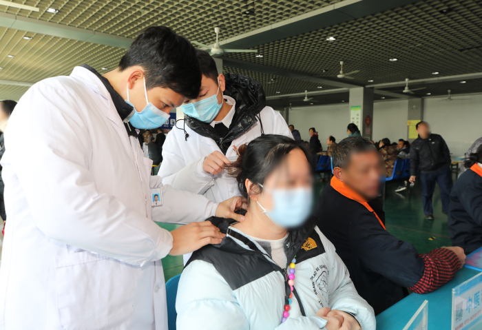 活动现场,南溪山医院内分泌科、全科医学科、眼科、中医科国际健康管理中心等科室的专家组成义诊队伍,为在场职工解答健康问题,同时给出在饮食、生活习惯等方面应注意的事项和意见建议。医护人员耐心地为每一位前来就诊咨询的员工免费测量血压,进行健康指导,中医骨伤专家在现场为职工进行中医推拿,为他们缓解工作时留下的不适。