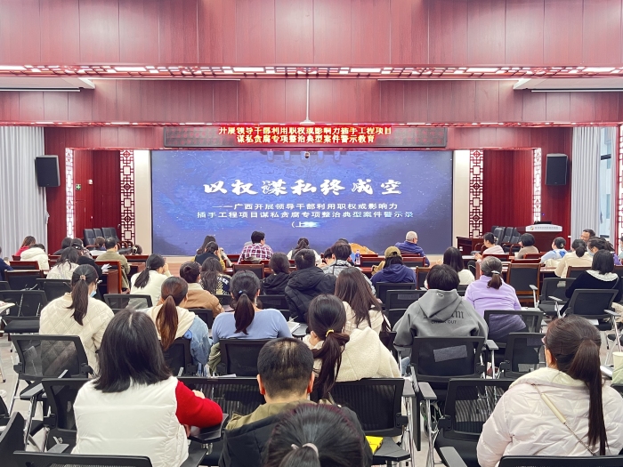 为推动警示教育制度化、常态化,引导全院干部职工知敬畏、存戒惧、守底线,筑牢拒腐防变思想根基,近日,桂林市中西医结合医院组织观看警示教育专题片《以权谋私终成空——广西开展领导干部利用职权或影响力插手工程项目谋私贪腐专项整治典型案件警示录》。
