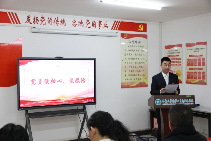 活动第二环节开展了“学思践悟强党性 笃行不怠向未来”“主题党日+”活动,6名青年党员代表用铿锵之音朗诵《让青春在新征程上绽放光彩》,深情表达对祖国繁荣发展、中国进入新时代的敬意,立志做有理想、敢担当、能吃苦、肯奋斗的新时代好青年,让青春在全面建设社会主义现代化国家的火热实践中绽放绚丽之花。在“党建知识大家答”中,党员们踊跃参与答题。通过答题,有效检验了党员们对党的理论知识的掌握和理解,营造了浓厚的学习氛围,起到了以赛促学的良好效果。随后,支部为第四季度20名支部党员集体过“政治生日”,通过重温入党誓词、赠送精美的“政治生日”贺卡、党员代表分享入党以来的心得感悟,党员同志始终牢记共产党员身份、初心使命、对党忠诚和不负人民的理想信念。