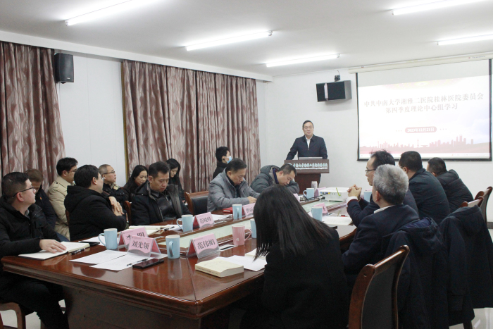 近日,中南大学湘雅二医院桂林医院开展2023年第四季度党委中心组(扩大)集中学习。党政领导班子成员、院长助理、党支部书记、部分职能科室负责人共30余人参加集中学习并作交流发言。