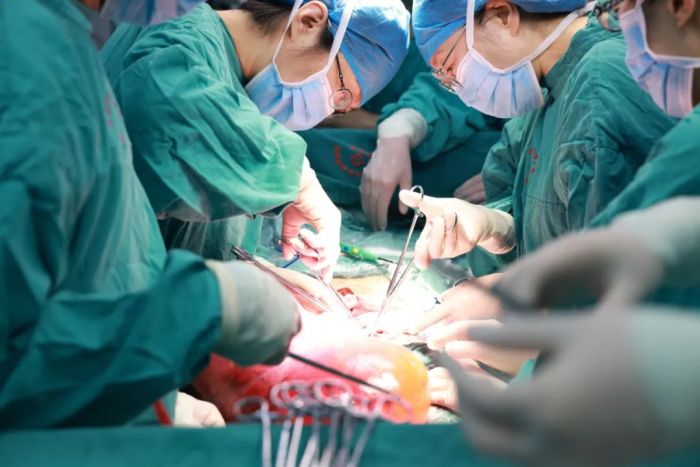 血栓威胁得到了解决,接下来就是要解决巨大肿瘤问题。刘勋姣介绍,此例巨大肿瘤考虑为罕见的巨型子宫肌瘤,同2月份的病例极其相似,虽然已有相关经验,但仍不能掉以轻心。因为考虑到术中解除瘤体对血管的压迫,突然增加的血流有可能冲刷到滤网移位,肌瘤邻近盆腔血管网密集、血供丰富,术中极有可能出现大出血及邻近器官损伤,甚至危及患者生命!为确保手术成功,妇瘤科邀请了普外科、重症科、放射科、麻醉科、肿瘤介入科等多学科进行会诊,对病例进行讨论,制定手术方案及风险应对措施,经过多科会诊,最后决定为小莉行剖腹探查术。