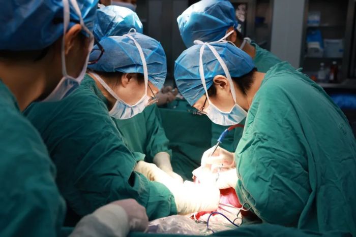 考虑到手术中稍不小心就会引发血栓脱落,极易对患者造成生命危险,当日,在肿瘤介入科的协助下,手术团队为患者放置了下腔静脉滤网,这样可以最大程度减少血栓脱落导致对全身重要器官的威胁。