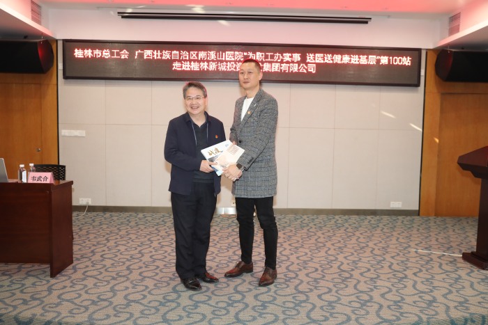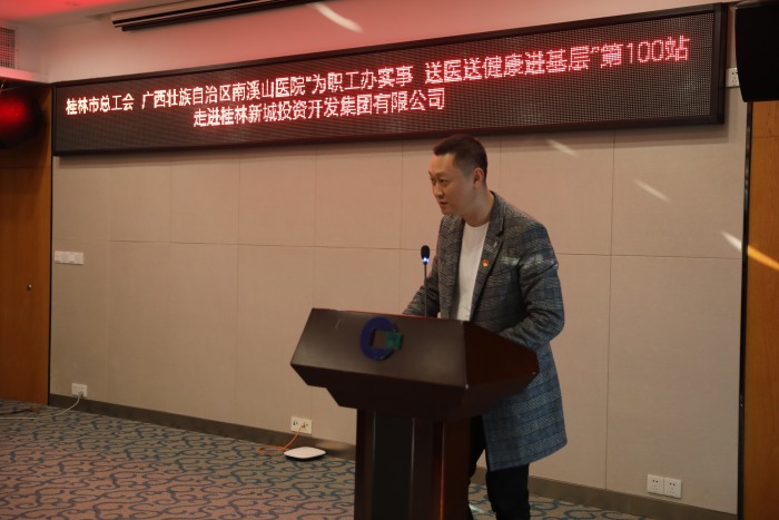 12月29日,由桂林市总工会携手广西壮族自治区南溪山医院开展的“为职工办实事、送医送健康进基层”活动走进桂林新城投资集团,这是此系列活动的第100场。