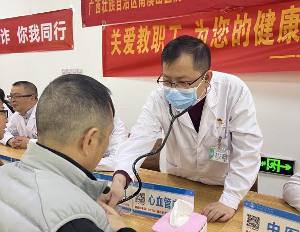 1月5日中午,桂林市总工会、广西壮族自治区南溪山医院、中国联通桂林分公司携手走进桂林市师范高等专科学校,联合开展“为职工办实事 送医送健康进基层”系列活动,为学校教职工送去2024年新年健康大礼,这也是系列活动的第103站。
