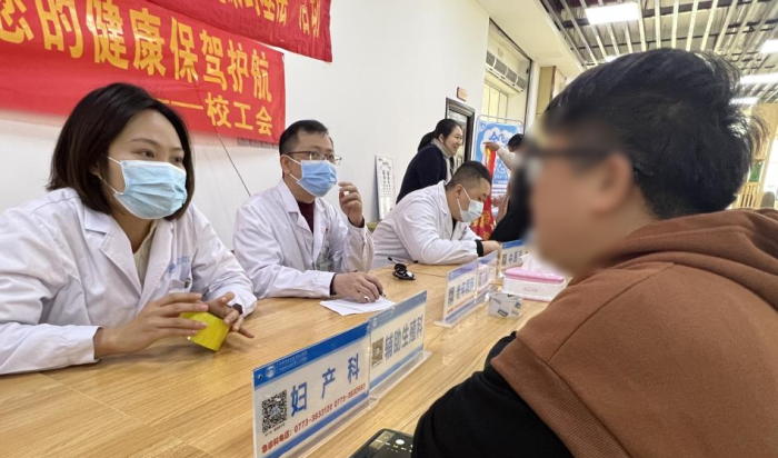 南溪山医院根据桂林市师范高等专科学校教职工的职业特点、健康需求等,专门派出了心血管内科、妇产科、中医科、眼科、老年病科、烧伤整形与创面修复、医学美容科、康复医学科、国际健康管理中心等多个科室的11名资深医护专家为职工免费提供健康咨询、身体检查及视力检测等医疗服务。