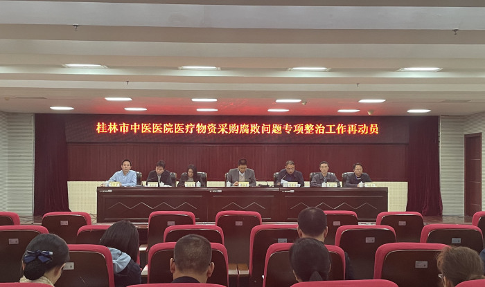 近日,桂林市中医医院组织召开医疗物资采购腐败问题专项整治工作再动员会议。医院领导班子出席会议,纪委书记黄泽旗主持会议,全院中层干部、党支部书记参加会议。