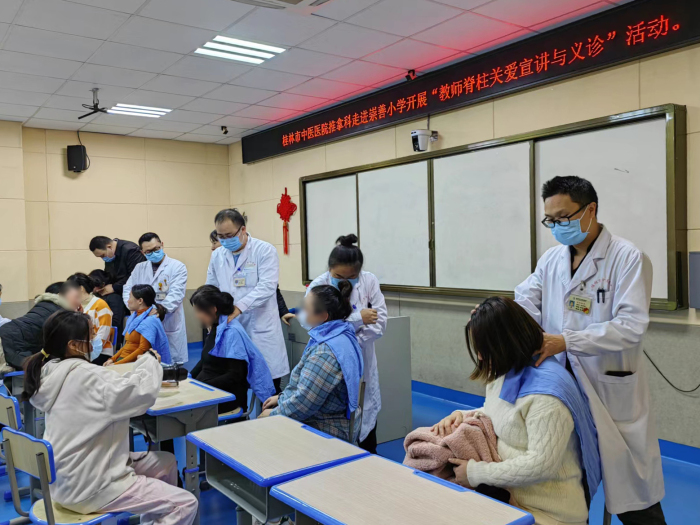 为关爱教师身心健康,提高教师健康意识,近日,桂林市中医医院推拿学会党支部走进桂林市崇善小学开展教师脊柱关爱宣讲暨义诊活动,让教师足不出校享受优质医疗服务,增强对脊柱疾病的防治意识。