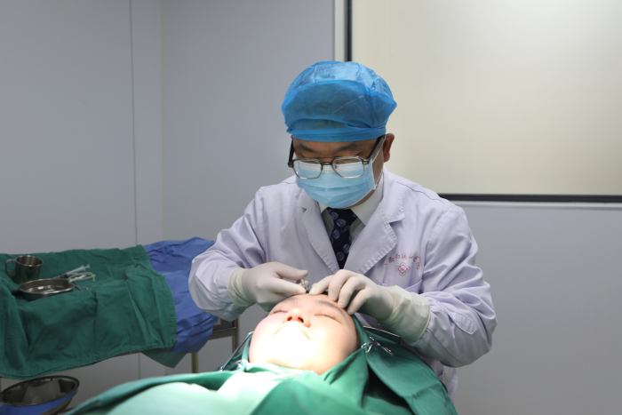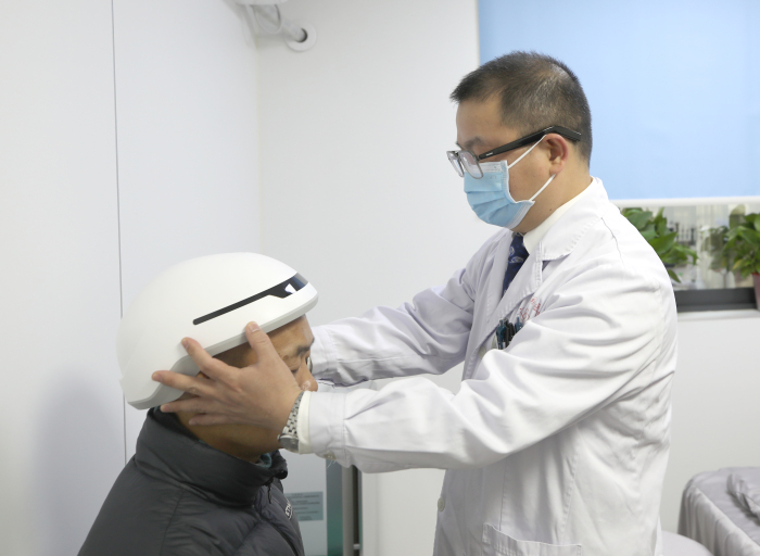 整形美容科主任黄相为脱发者进行半导体激光治疗