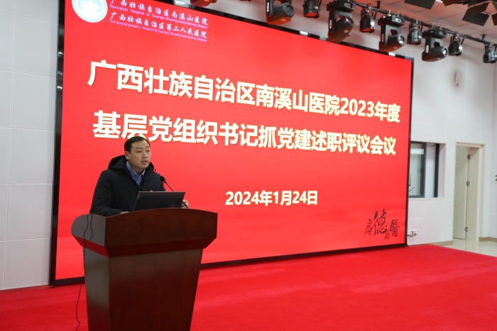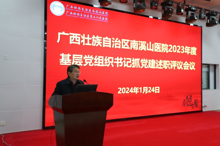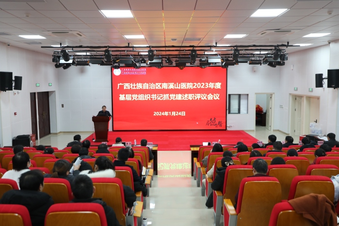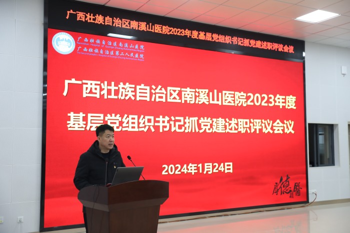 为持续推进“五基三化”提升年行动任务落地落细,1月24日,中共广西壮族自治区南溪山医院委员会召开了2023年度基层党组织书记抓党建述职评议工作会议,全院59个党支部(总支)逐个展示了所辖科室党建引领业务发展工作成效,在互学互鉴中亮成效、晒问题、比实绩、强服务。会议认真总结了2023年医院党建工作成效,全面部署2024年党的建设及党风廉政建设各项工作。