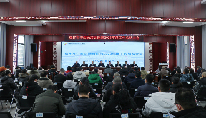 1月25日,桂林市中西医结合医院召开2023年度工作总结大会,医院领导班子成员出席会议,院长蒋福明主持会议。