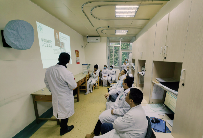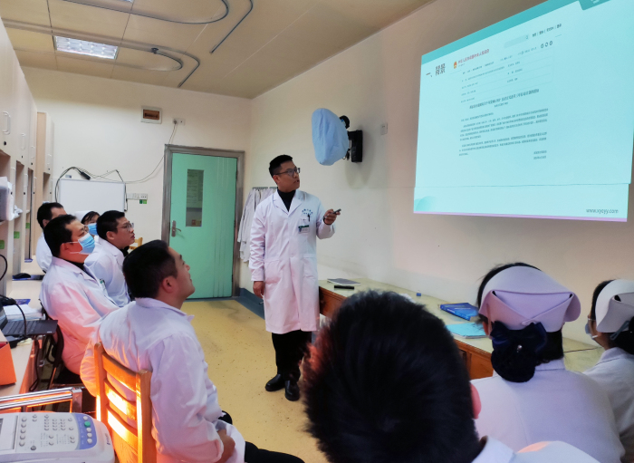 在繁忙的临床工作期间,崔岩副主任还定期组织科室人员进行专科业务学习,将临床指南、前沿技术进展与科室目前发展面临的实际问题相结合,有的放矢提升科室人员专科业务能力,促进“医、教、研、护、学”全面发展。