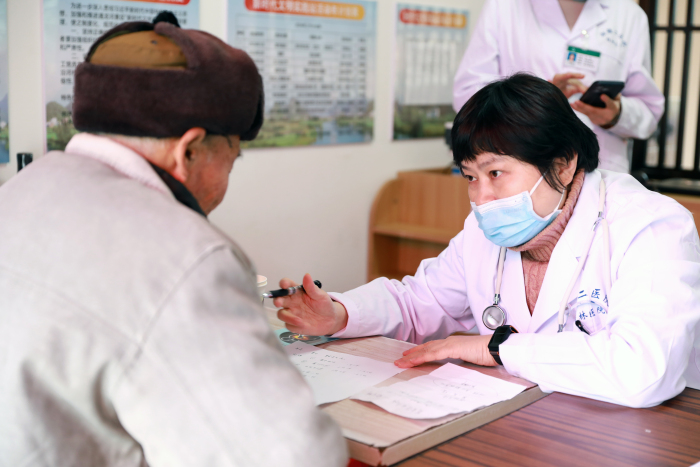 当天上午,在志愿者的引导下,医护人员为群众免费测量血压、血糖,临床专家为村民开展诊疗服务,详细询问群众相关病史,耐心解答疑惑,积极普及医学常识和相关健康知识,指导群众早预防、早发现、早诊断、早治疗。对检查结果异常的群众给出相应的治疗建议,并叮嘱他们发现问题及时到正规医院检查就医。
