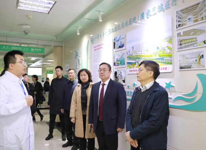 实地调研期间,调研组对中南大学湘雅二医院专家派驻情况、中南大学湘雅二医院桂林医院叠彩院区运营情况及临桂院区建设进度等进行了深入了解。