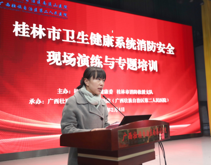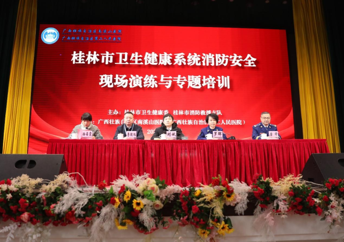 2月5日,由桂林市卫生健康委、桂林市消防救援支队主办,广西壮族自治区南溪山医院承办的全市消防安全现场演练与专题培训会顺利举行。桂林市各县卫生健康局、驻桂各卫生健康单位以及各县公立医院、民营医院、托育机构、医养结合机构等单位领导及具体负责同志参加会议。