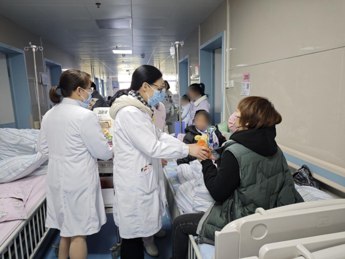 除了身体层面的救治外,南溪山医院医务人员也格外注重患者们心理上的安慰。假期期间,各科室医务人员拿出事先准备好的新年礼品、苹果等,赠送给在院的病友,向他们致以春节的美好祝愿,希望他们早日康复。