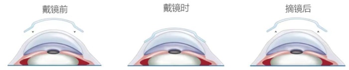 想象一下,在夜间,当你闭上眼睛入睡时,角膜塑形镜会缓慢而温和地压平你的角膜,暂时地将你的角膜“塑形”,使角膜中央区的曲率变小。第二天醒来时,你的角膜会依然保持这种新的形状,从而在白天也能拥有清晰自然的视力。
