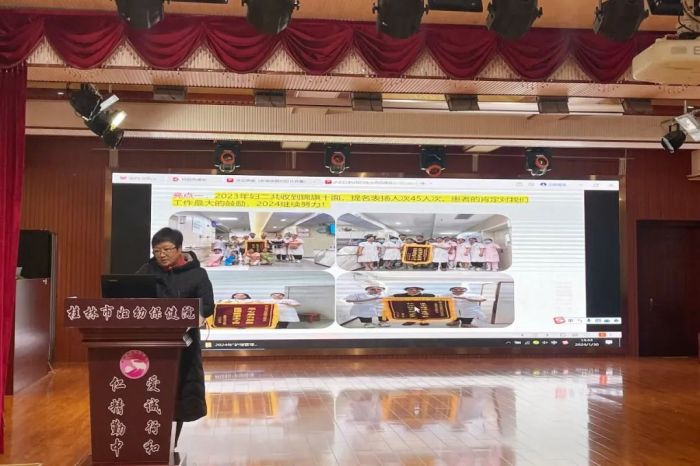 为提升护士长管理能力、拓展管理思维,研讨护理管理之道,促进护理工作高质量发展,更好地服务广大病友,1月30日下午,桂林市妇幼保健院组织举办2024年护士长“护理管理新举措”评比活动,副院长马丽出席会议,全院护士长、护理骨干及护理部相关人员共100余人参加活动。活动由护理部副主任李红艳主持。