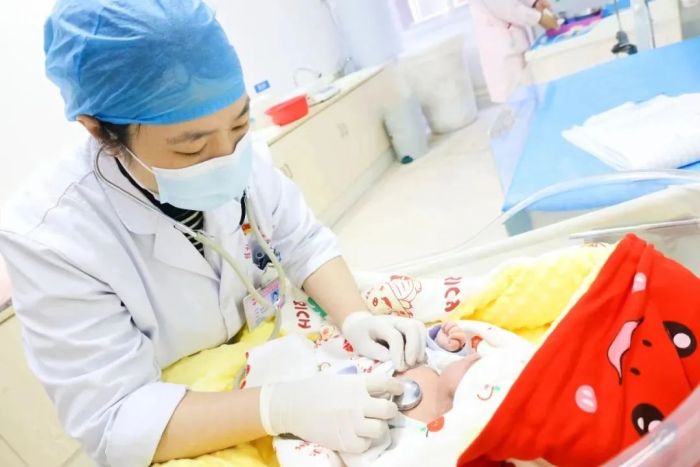 新生儿科和新生儿听力筛查中心(耳鼻喉科)的医师到产科进行查房和疾病筛查