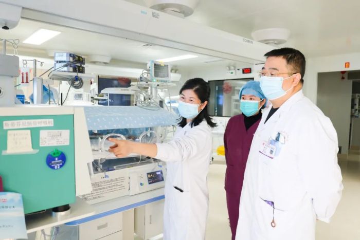 “我们接诊回来的这对双胞胎宝宝,小宝出生时体重仅有1.4Kg,诊断患有早产儿肺透明膜病、严重肺部感染等情况。”市妇幼保健院新生儿科副主任毛胜妹细心地叮嘱,“当班人员要注意加强护理、维持正常呼吸、维持电解质平衡、注意其他合并症。”