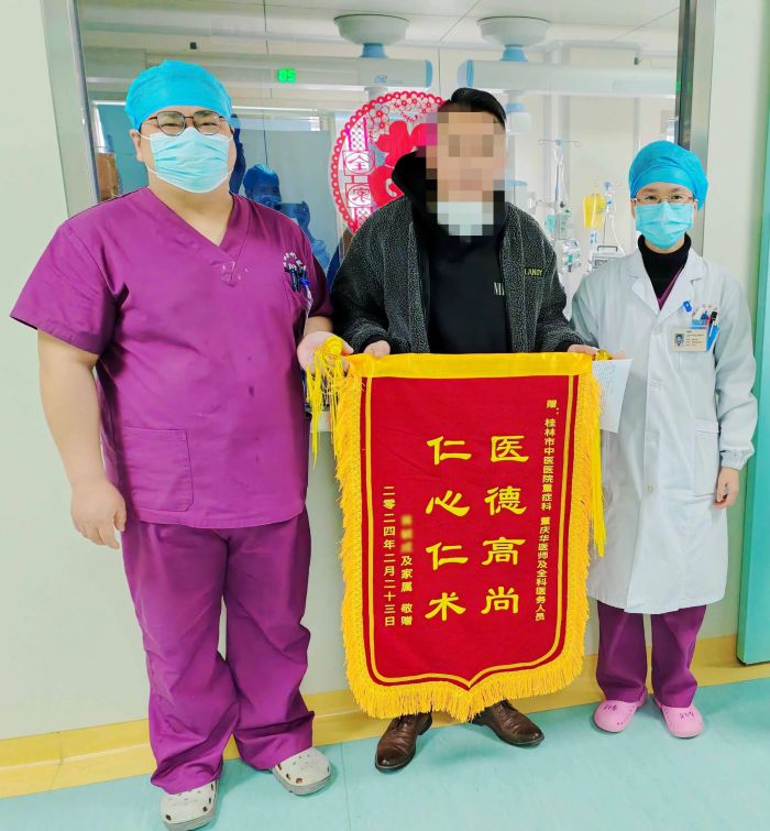 2月17日,桂林市中医医院重症医学科上演了一场与“死神”争分夺秒的抢救大战,经过强有力的心肺复苏和积极救治,重症医学科团队成功将一名突发急性肺栓塞-高危组患者从死亡线上拉回。“当时心跳都没有了,是医护团队把我合力从‘鬼门关’里拉了回来!太感谢了!”患者及其家属对医护人员精湛的医术和辛勤付出感激不已。
