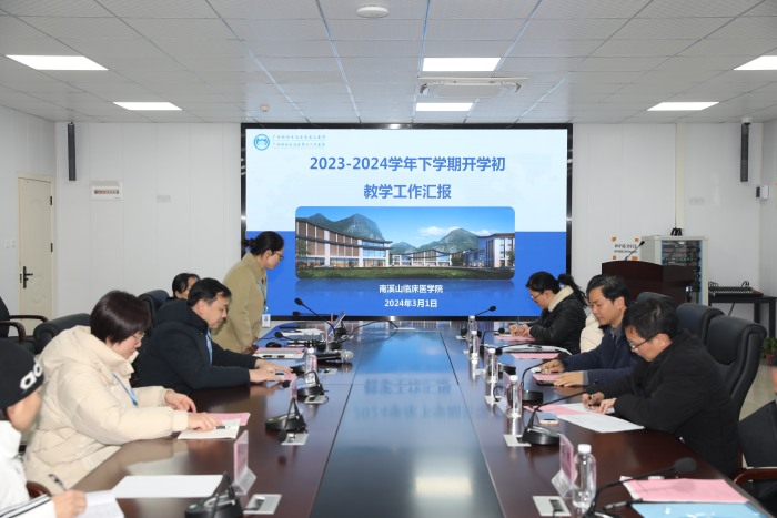 在汇报会上,南溪山医院副院长胡长付、教学管理科副科长赵红丽作开学初教学准备情况汇报。李清华副院长对南溪山医院的教学工作及教学环境给予了高度评价,他表示,自治区南溪山医院作为桂林医学院非直属教学医院,常年承担桂林医学院临床医学专业本科生临床课程的理论教学和实践教学任务,教学发展态势良好,近些年来教育教学工作迈向新台阶。