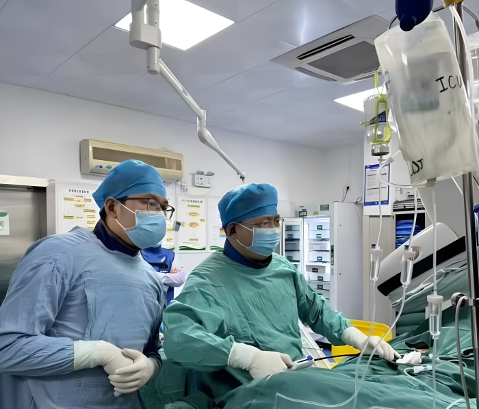 术中,在局部麻醉下,刘启明教授带领驻桂专家、中南大学湘雅二医院桂林医院心血管内科执行副主任涂涛和心血管内科行政副主任赵印平,仅用时不到30分钟便完成了Micra AV无导线双腔心脏起搏器植入。术后,患者感慨道,虽然是局部麻醉手术,但手术过程中几乎没有特别的不适感,很快就完成了。