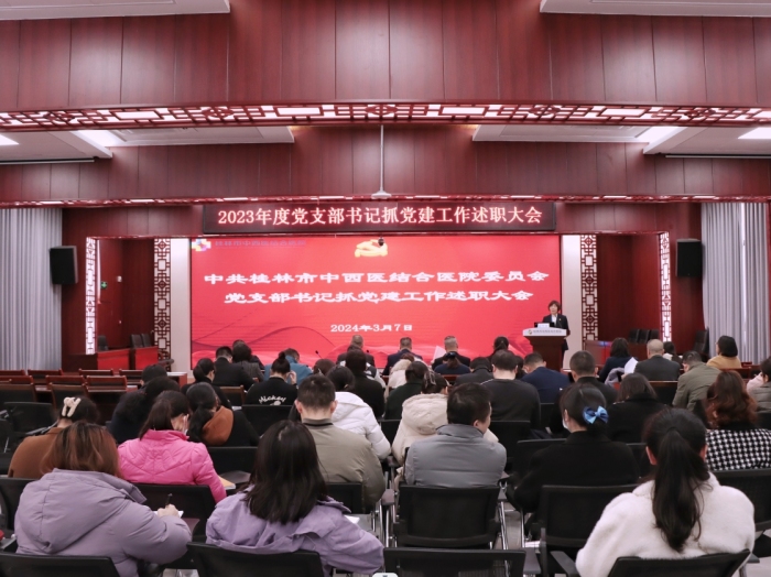 为全面落实新时代党的建设总要求,巩固拓展主题教育学习成果,推动全面从严治党向纵深发展,不断提升医院党建工作质量,为医院的高质量发展提供坚强组织保障。3月7日,桂林市中西医结合医院党委在中医文化大讲堂召开2023年度党支部书记抓党建工作述职述评会议,会议由副院长陆雪萍主持。