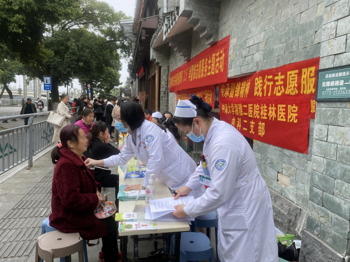为传承和弘扬雷锋精神,中南大学湘雅二医院桂林医院内科二支部组织党员志愿者在“三八”国际妇女节当天,联合解东社区、秀峰社区开展义诊服务活动,以实际行动践行志愿服务,发挥优势彰显社会责任担当。