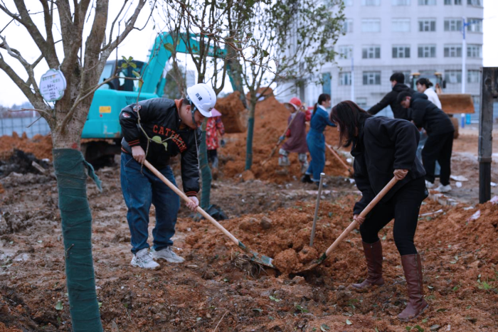 活动现场,职工们挥动着手中的铁锹,干劲十足地投入到植树活动中。他们齐心协力,将一棵棵树苗种植在临桂院区的沃土之上,以刻苦奋斗铭志于木、寄情于林,为打造和谐美丽舒适的院区“增绿添彩”,把对未来的美好期望种在土地上,与这片“学科林”共同成长、共同壮大。本次种植树木70余棵。