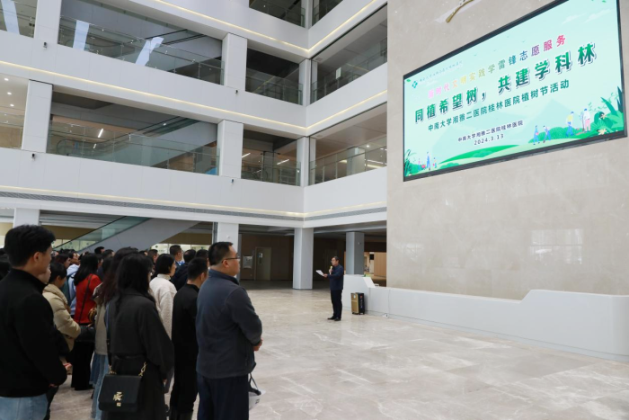 随后,中南大学湘雅二医院桂林医院党委书记、院长刘先领作动员讲话。他表示,此次活动不仅是践行新时代文明实践学雷锋志愿服务精神的体现,更是以实际行动诠释“绿水青山就是金山银山”的深刻内涵。“独木难成林”,每一个科室都认领并命名了一棵树苗,一棵棵树苗汇聚在一起,终将成为一片生机勃勃的树林。这寓意着全院每个科室、每位职工都是医院大家庭中不可或缺的一份子,唯有勠力同心,凝聚力量,医院今后发展才大有可为。