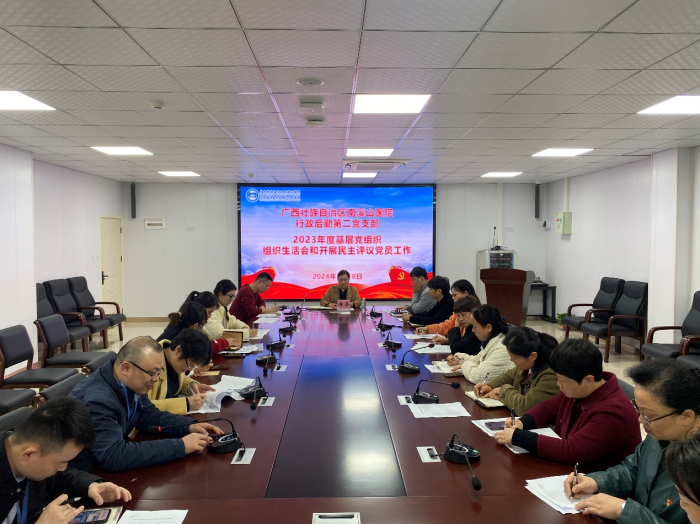 3月18日,广西壮族自治区南溪山医院行政后勤第二党支部开展2023年度基层党组织组织生活会和开展民主评议党员及2024年党风廉政行风建设和反腐败斗争例行谈话工作会议。支部联系院领导唐芬副院长以普通党员身份参加会议。