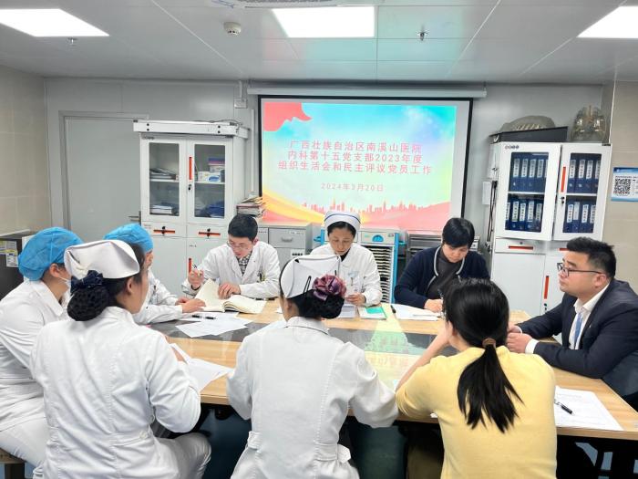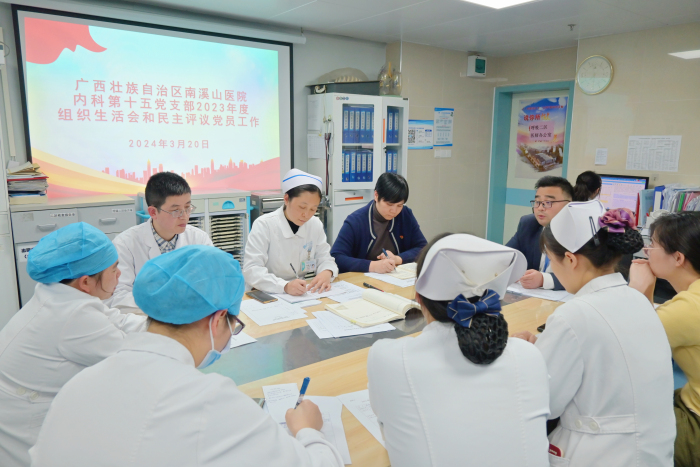 3月20日下午,广西壮族自治区南溪山医院内科第十五党支部召开2023年度基层党组织组织生活会及2024年党风廉政行风建设和反腐败斗争例行谈话工作会议。医院党委委员、监察室主任丁少敏以普通党员的身份参加。