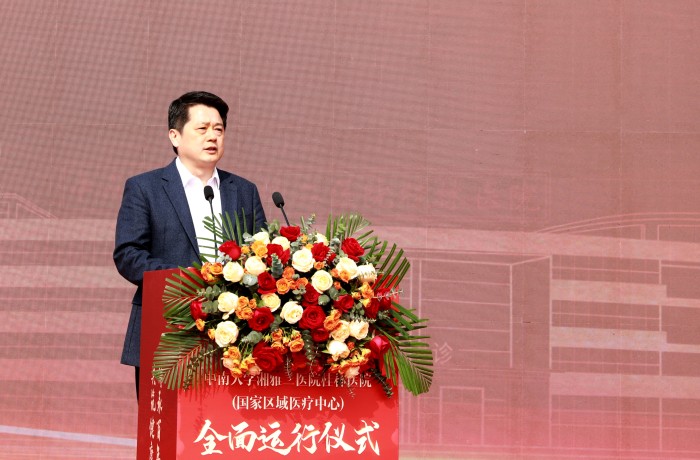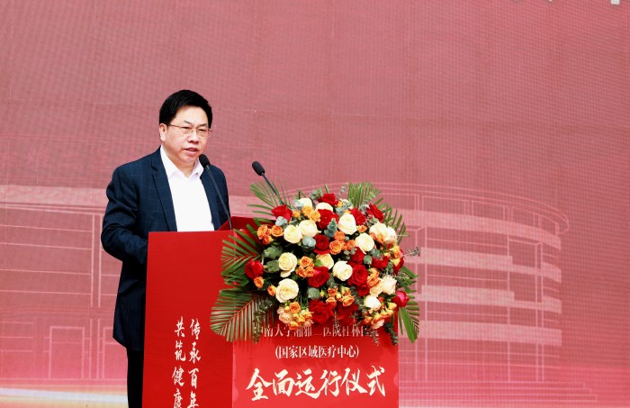 桂林市市长李楚表示,中南大学湘雅二医院桂林医院全面运行,是推进健康桂林建设的务实之举,必将引领带动全市乃至全区卫生健康事业高质量发展。桂林市委、市政府将竭诚做好服务保障工作,努力为医院安心经营、医护潜心工作、患者舒心就医创造良好条件。他希望中南大学湘雅二医院桂林医院充分发挥“南湘雅”的品牌优势,在学科建设、人才引进、医院管理上站高谋远,打造高水平的临床诊疗中心与人才培养基地。