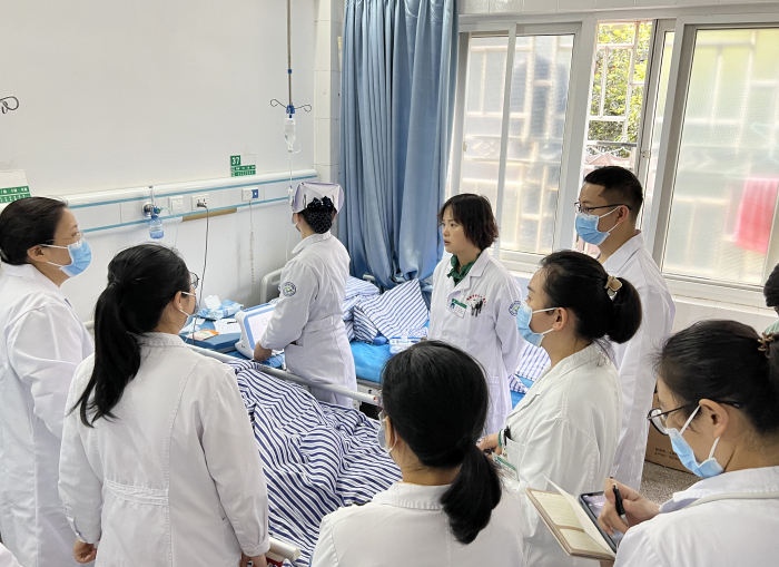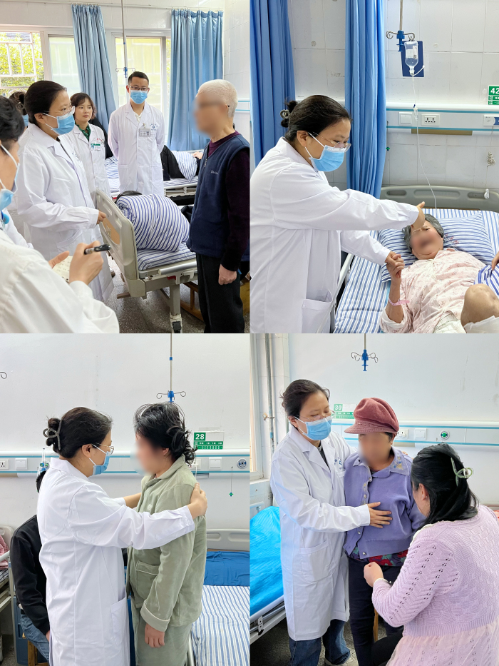 湘雅二医院康复医学科孔瑛主任深入病房,认真听取了管床医师的病例汇报,并查阅患者各项临床资料。在对患者进行详细问诊和身体检查后,孔瑛主任针对每位患者的治疗方案、用药指导、护理要点及康复计划等提供专业而具体的建议。对于重症患者,孔瑛主任还指导家属掌握有效的拍背方式以促进痰液排出,并强调营养摄入的重要性。康复医学科全体医师、技师和护士长均全程参与,纷纷表示获益匪浅。